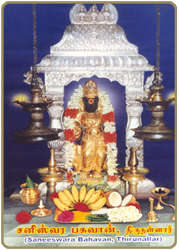 Sri Dharbarenyeswaraswamy Devasthanam, Thirunallar is one of the famous Lord Siva temples in India. Thirunallar is located 5 kilometers west of Karaikal in the bus route of Karaikal-Mayiladuthurai and Kumbakonam.. Whoever visits this temple and prays before Lord Saneeswaran is believed to have been relieved of all the curses and sufferings and get the blessings of Lord for a happy and prosperous life. Saneeswaran is reputed to be both, a giver and destroyer. A person who prays to Saneeswaran will be blessed with not only riddance from the problems and worries faced, but a life that one desires.